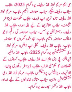 The CM Flood Relief Program 2025, led by Maryam Nawaz Sharif, is not just a relief package — it is a lifeline of hope for millions of victims in Punjab. By offering financial aid, rebuilding infrastructure, and preparing communities for the future, this program reflects both compassion and leadership.